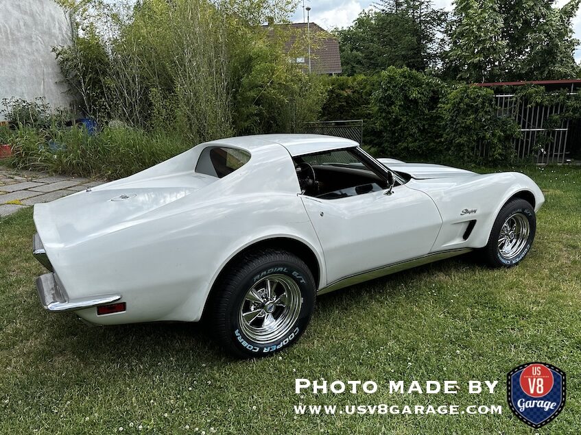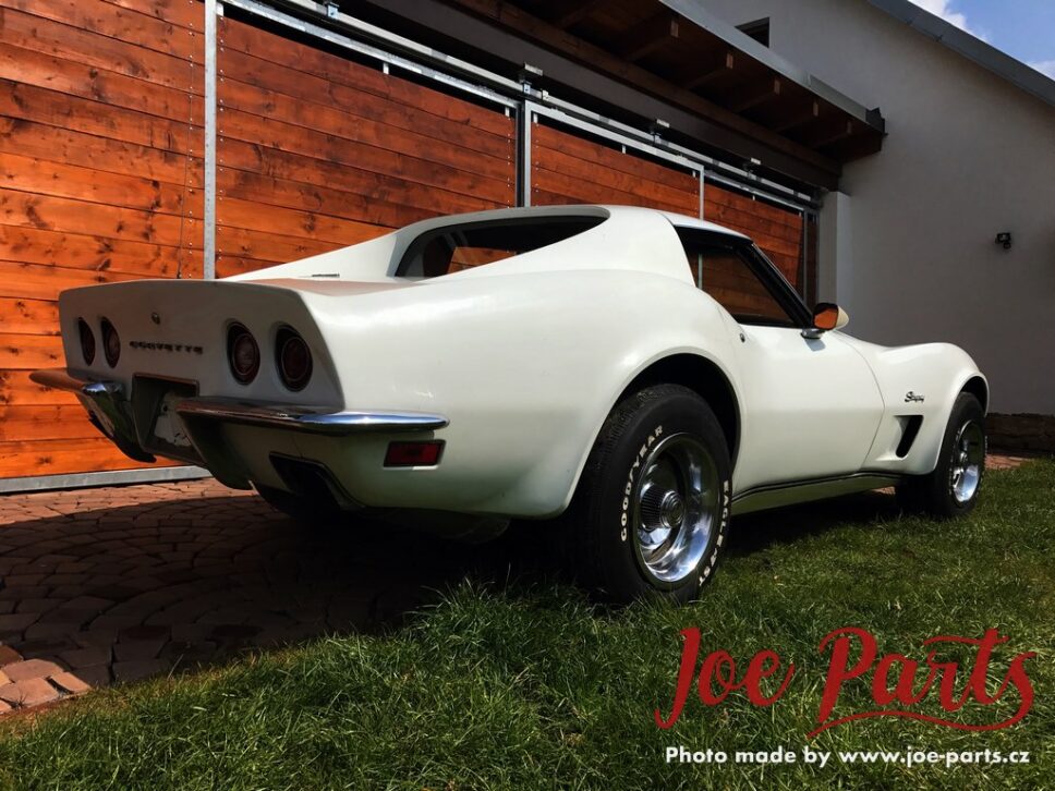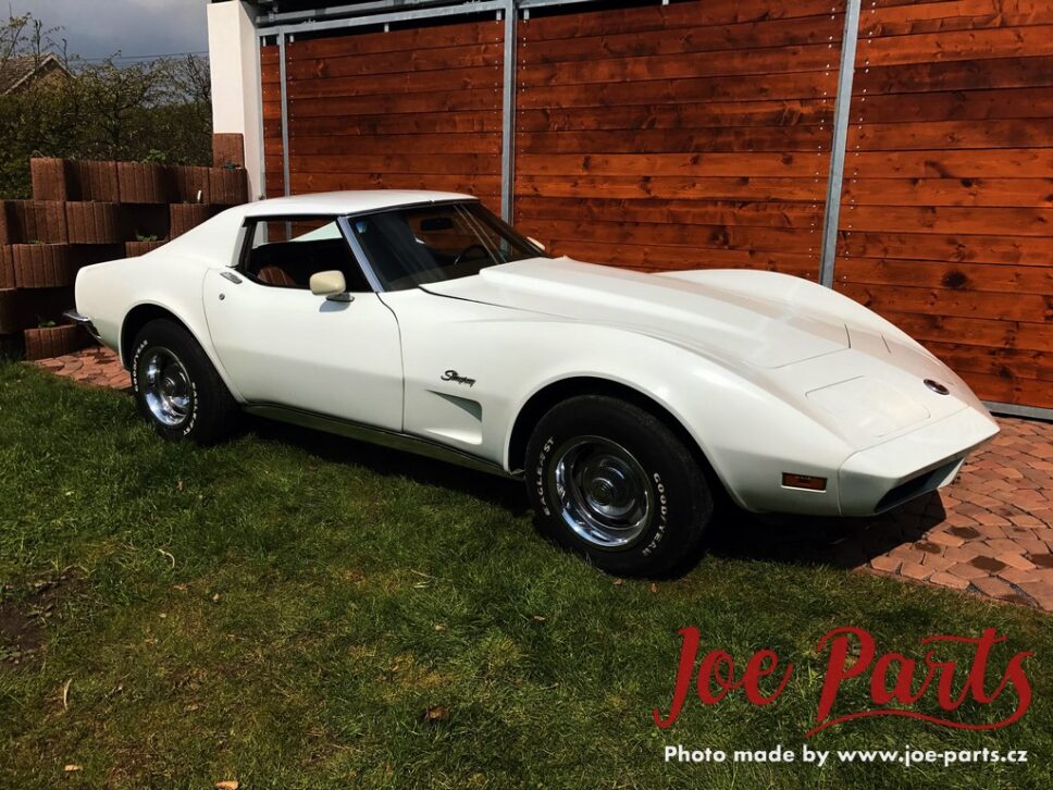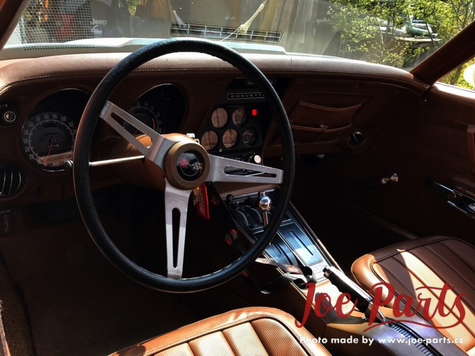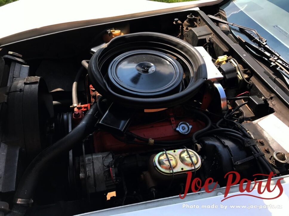 Automatická 3 rychlostní převodovka TH400, 350CID, 190hp, 8,5:1 komprese, hnědý vinylový interiér s dobovou patinou. Posilovač řízení, posilovač brzd, chromový kryt rozdělovače, originál rádio. Originální chromová zrcátka již na voze. Na každé Corvette C3 je nejdůležitější stav rámu. Tato ho má v naprostém pořádku.
